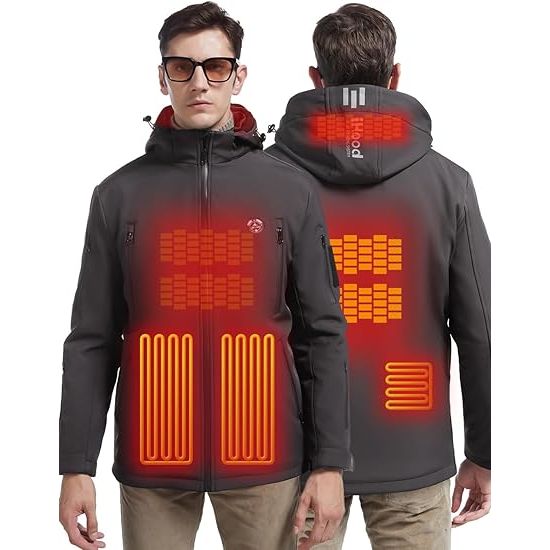 iHood Men's Heated Jacket with Detachable Hood, Waterproof Winter Outdoor Heating Jackets for Men (Battery Pack Included)