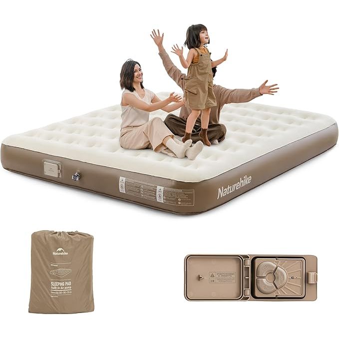 Naturehike Compact King Size Air Mattress with Electric Built-in Pump, 79 * 71in Extra Wide Inflatable Mattress for Home, Camping, Guests, Travel, Morning View Series